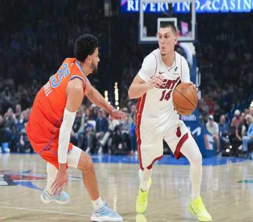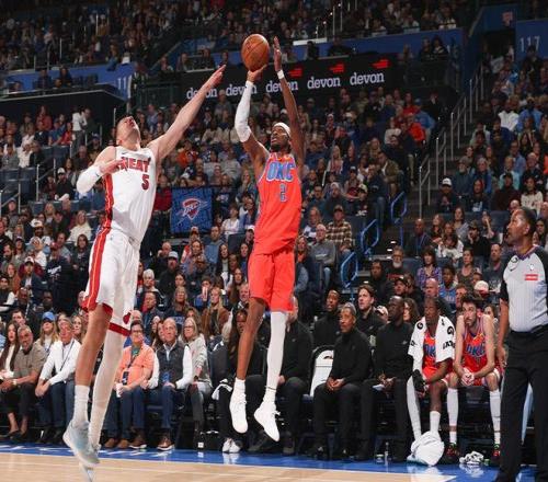 北京时间1月12日,NBA常规赛卫冕冠军雷霆主场对阵热火,其中热火是背靠背第二场。雷霆在一度落后9分情况下,凭借后两节的出色表现反超20+优势,最终雷霆124-112逆转战胜热火收获3连胜。雷霆前40场33胜7负稳居联盟第一,热火遭遇3连败,雷霆取得对热火交锋5连胜。